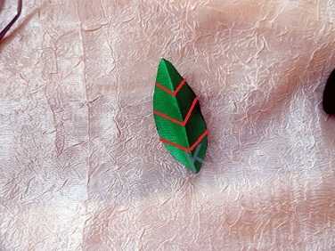 Ну и делаем дальше прожилочки, до низа листочка, стараясь сделать лепесточек похожим на лист розы.