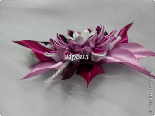 Делая такой зажим столкнулось с проблемой, думаю что она возникает у многих. У меня не оказалось ленты 2,5 см для изготовления острых листиков такого же цвета как в цветке. Прошлась по интернету, ничего не нашла, пришлось поломать голову. Если кто-то знает подобный МК, дайте ссылку, удалю этот.