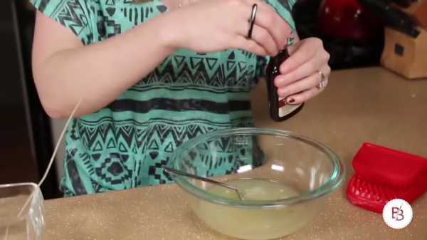 3. Снимите воск с плиты и дайте остыть до 50 градусов. После этого добавьте ароматизирующее вещество — ванильное ароматическое масло или лаванду.
