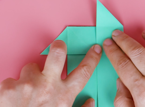 Теперь, все, что было загнуто за последние три действия, следует развернуть обратно. Нам было нужно лишь создать нужный угловой изгиб на листе бумаги (ориентируйтесь на фото).