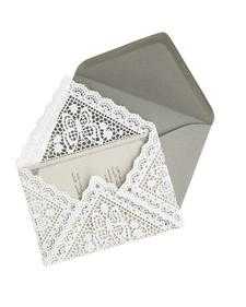 Еще один вариант – применение кружева в оформлении. Приклеить только на уголок или покрыть максимум поверхности конверта – зависит от вашей фантазии.