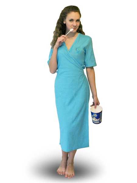 Рекомендуется покупать модели из полиэстера, завязывающиеся на поясе. Такой халат считается универсальным, так как подойдет каждой представительнице прекрасного пола.