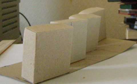 ![]() Сгибаем по ребрам | Согните ее так, чтобы коробочки поместились внутрь. |