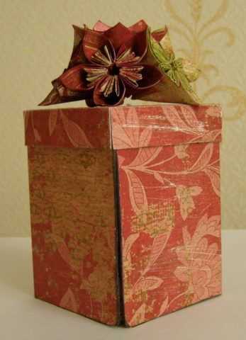Еще один оригинальный способ упаковать подарок для виновника торжества. Для изготовления такой коробочки понадобится фантазия и золотые руки мастера.