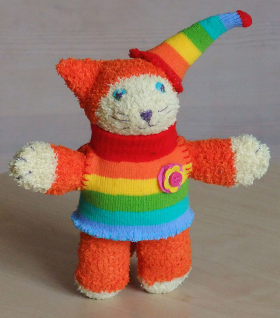Кадр: @Let’s make it together / YouTubeОтрежьте лишнюю ткань и выверните деталь. Набейте тело котика наполнителем и зашейте отверстие внизу.