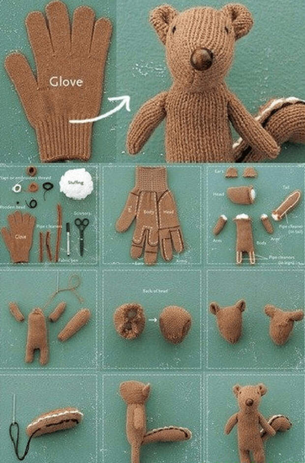 Кадр: @Let’s make it together / YouTubeВыверните заготовку на лицевую сторону с помощью деревянной палочки. Набейте мишку наполнителем и зашейте отверстие сбоку.