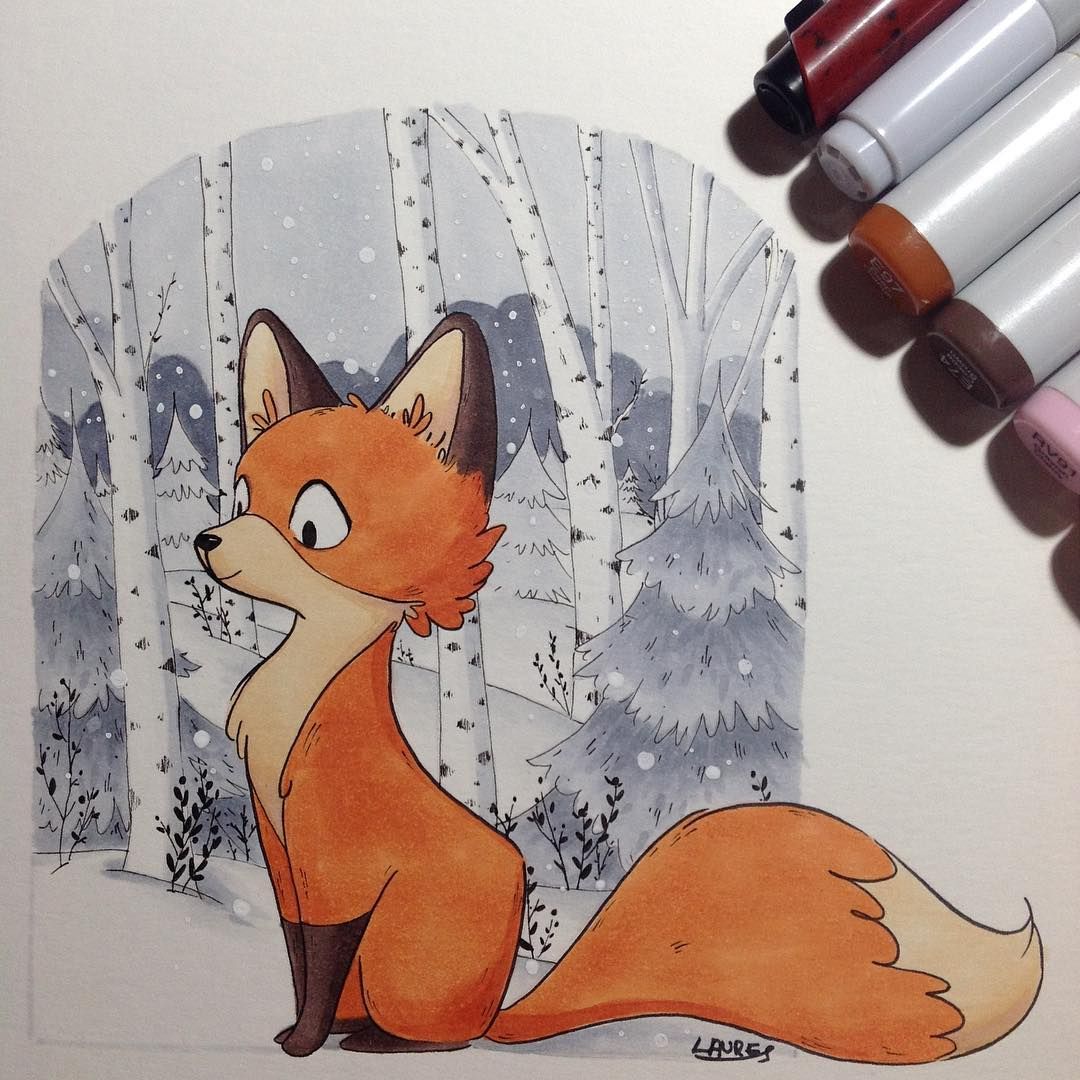 Картинки с рыжими хищницами, нарисованные карандашом или красками, все очень красивые. На тех, которые цветные, художник хотел выиграть на контрасте: огненно-рыжая красавица просто шикарно смотрится на фоне белого снега.