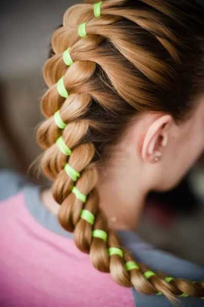 - Продолжаем плетение до нужной длины. Завязываем косу резинкой.
