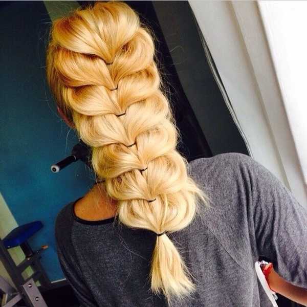 Косичку нужно сделать не тугой. В ходе плетения прядки следует слегка растягивать, чтобы добавить прическе объема.