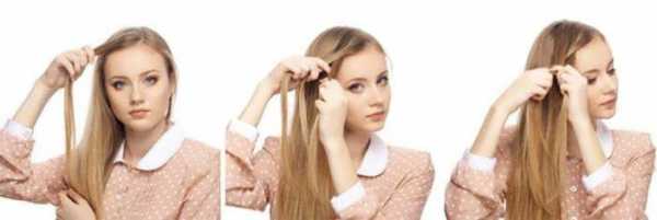 - Берем часть волос ото лба и делим на три равномерных пряди;