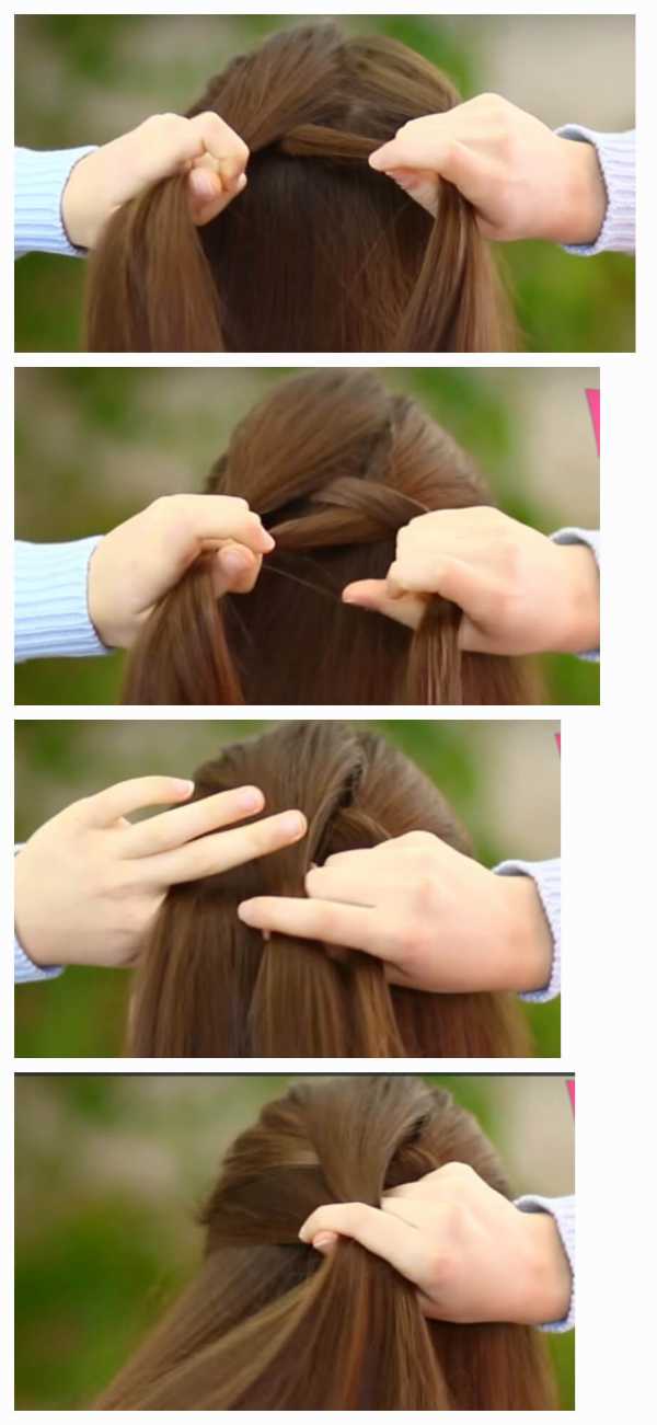 - Толстую прядку у лба, напоминающую треугольник, подколите резинкой.