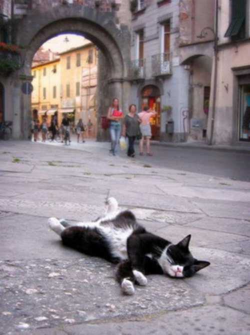 Кошки — излюбленные домашние питомцы во всём мире. Эти забавные зверьки ведут себя словно дети. Им абсолютно всё равно, что подумают о них люди, и потому в своём поведении и поступках они кажутся совершенно непринуждёнными. Кошки очень игривые, озорные и очень смешные. Люди на протяжении нескольких тысячелетий не перестают умиляться своим питомцам и стараются заботиться о них со всей ответственностью. От того, что кошкам не пристало соблюдать приличия и нормы поведения для них чужды, они могут спать так, как им заблагорассудиться. Наигравшись вдоволь, они могут уснуть буквально на полушаге.