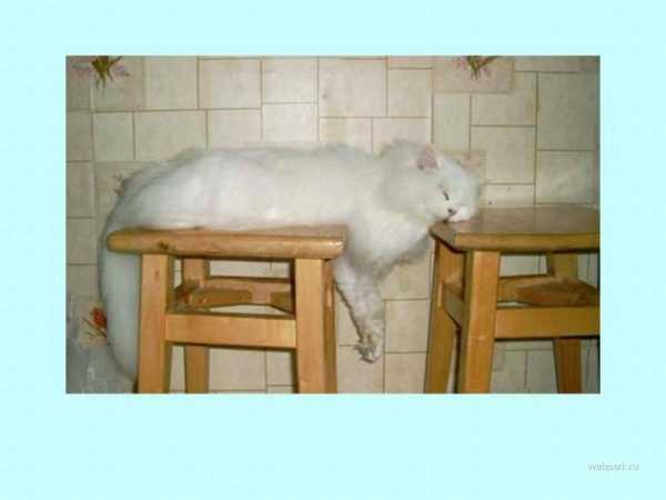 Кошка может лечь спать там, где у неё закрылись глаза. Некоторые места могут показаться абсолютно неудобными. Многие люди могут позавидовать сонливости этих пушистых созданий, ведь у некоторых из нас не получается заснуть даже в тёплой и мягкой постели, а кошки могут видеть сладкие сны хоть на спинке стула, хоть на подоконнике. Конечно же, заботливые хозяева, не упустят шанса сфотографировать самые уморительные позы, которые принимают их любимцы во время сна, и далее вы можете увидеть подборку смешных фотографий, где спящие кошки демонстрируют свою независимость в полной красе.
