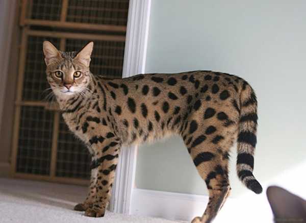 48-сантиметровый кот породы Саванна проживает в Калифорнии и имеет кличку Трабл. Его вес — 15 килограмм.
