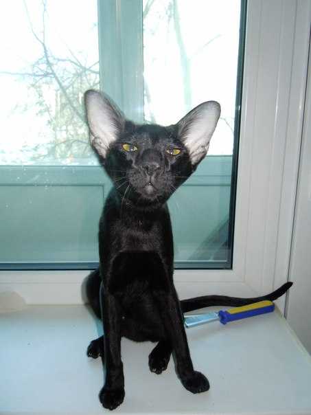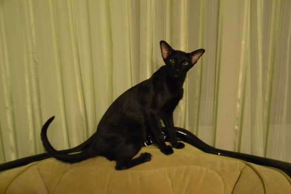 – История влюбленности в эту породу началась еще за год до появления в нашем доме ориентальной кошечки. Друзья завели себе черненького миленького котенка. Увидев их питомца, я подумала: «О боже, какое чудовище!», но не прошло и десяти минут, как я была в него влюблена. Такой грациозной осанки, умного взгляда, длинных и мощных лап, удивительно больших ушей я никогда не видела. Днями и ночами думала: «Хочу, хочу, хочу!». Прочитав много материалов, статей, отзывов владельцев об этой породе, узнала о характере, повадках своей будущей любимице. Все решено, берем! Я была влюблена и грезила появлением нового члена семьи.