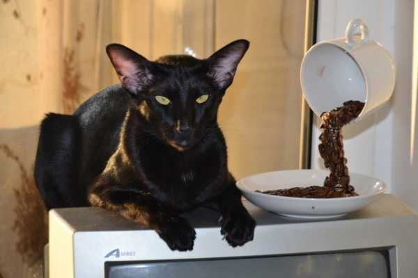 Кошки ориентальной породы едят все, что им дают. Но перекармливать их не стоит. Каждая порция должна быть небольшой: 30 грамм на 1 килограмм веса.