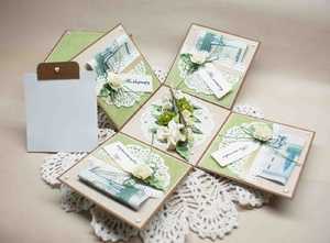- «Волшебная коробочка» – это специально оформленный бокс, в котором размещены памятные фото и пожелания. Выглядит она как своеобразная матрешка: при изготовлении коробочки каждый слой делается меньше и накрывается крышкой. На бок таких слоев в коробочке можно крепить фотографии, писать пожелания, а в саму серединку положить энное количество денег, свернутых в трубочку.