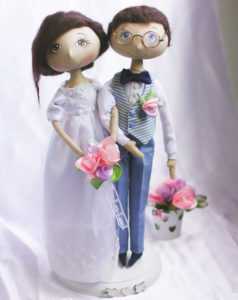 Куклы, олицетворяющие жениха и невесту, станут одним из лучших подарков. Можно заказать копии молодожёнов, а можно попытаться изготовить их самим, имея элементарные навыки ручной работы.