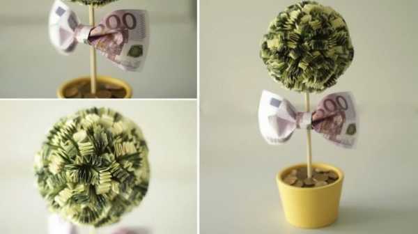Очень стильно и оригинально выглядит топиарий – это миниатюрное деревце, на ветках которого вместо листочков растут купюры.