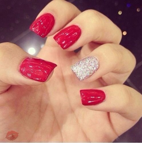 Блестки – недорогой и несложный в применении материал. Кроме того, он имеет очень широкую цветовую палитру, уместен и на длинных, и на коротких ногтях. Красный блестящий маникюр дарит нам сказочную атмосферу, где бы мы ни находились. Тем более в этом сезоне такой дизайн ногтей особенно актуален.