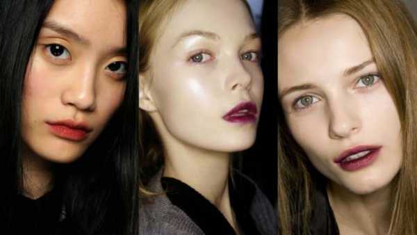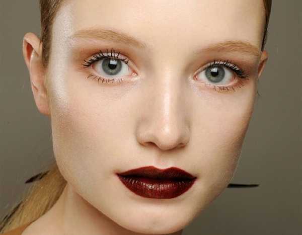 Эта техника мэйкапа позволяет сделать акцент на губы, а глаза лишь немного обозначить, просто подчеркнув их красоту. Для губ подбирается помада очень модного в этом сезоне матового оттенка – винного или темно-вишневого.