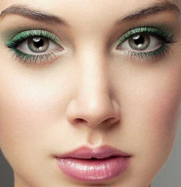 Верхнее подвижное веко покрывается тенями зеленого оттенка. У внешнего бока века, того, что ближе к виску, нужно оставить немного места для нанесения теней второго оттенка.