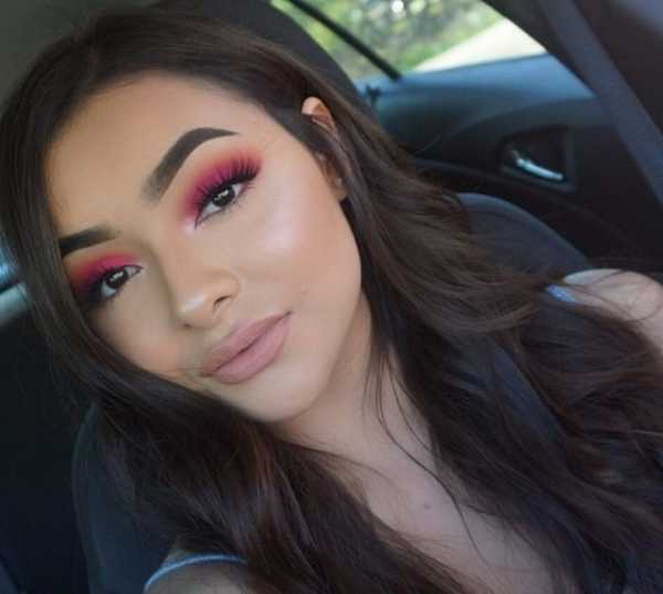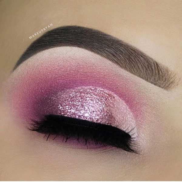 На внешнюю область наносятся тени ярко-фиолетового тона, также тщательно растушевываются. Один цвет должен плавно и без видимых границ переходить в другой.