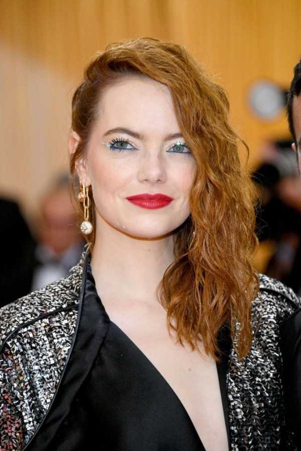 Красная помада на губах – это классика, особенно актуальная этой осенью. Дополнить образ с красной помадой можно с помощью тонких черных стрелок.