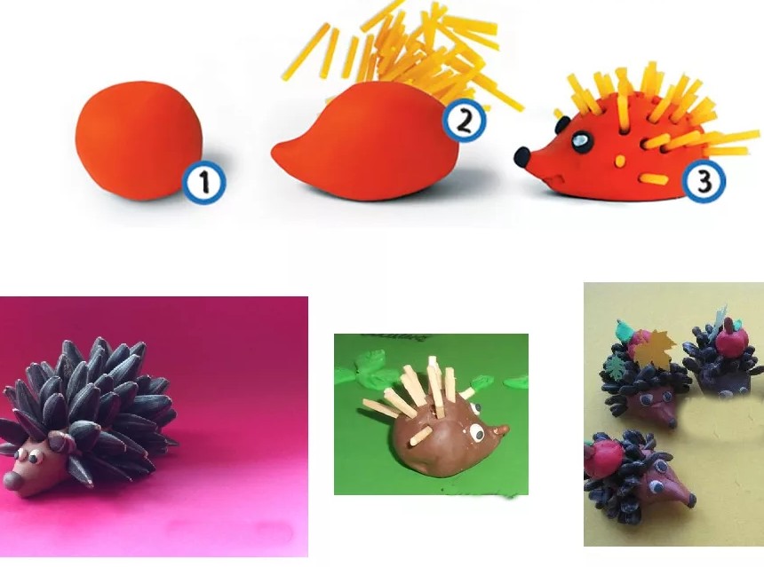 Если ваш ребенок очень любит лепить из пластилина различных животных, то предложите ему слепить ежика из пластилина. Малыш будет очень рад пополнить вою пластилиновую коллекцию новой поделкой. Но для начала ознакомьтесь с нижеприведенной инструкцией, которая отображает каждый этап лепки ежа. В процессе создания иголочек ребенку может понадобиться ваша помощь.