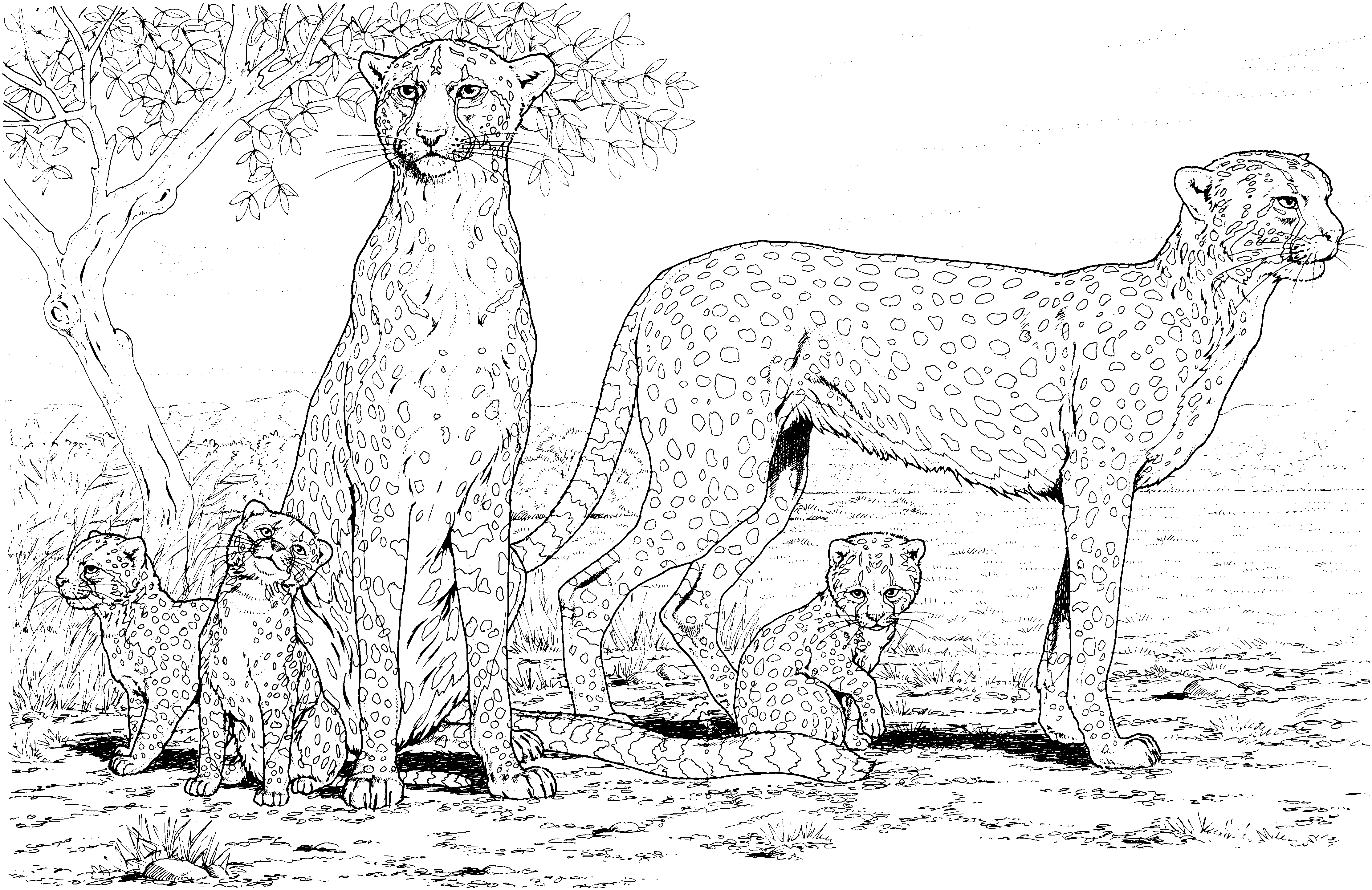 Тут для початку, коли ми тільки вчимося малювати диких тварин поетапно, найлегше використовувати олівці. Навчіть дитину не виходити за контури тіла тварини. Нехай він не намагається захопити якомога більше простору. Розкажіть, що шерсть росте в певному напрямку, тому набагато краще виглядає, коли волосинки можуть виділятися, і при цьому бути охайними і акуратними. На складках шерсть темніше, на визначні місця — світліше. Потім приступайте до тла. Почніть роботу зверху. Небо Прикрасьте рівномірно і горизонтально, щоб не було видно штрихів. Для листя спробуйте всілякі спіралі, закарлюки.
