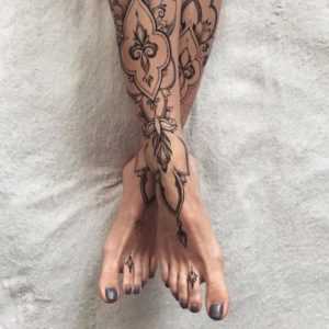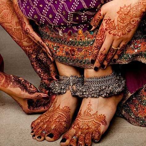 Индийский стиль мехенди является самым кропотливым и трудоёмким. Дело в том, что индийские орнаменты подразумевают нанесения на большие участки тела, например, от ступни до колена ноги или от кисти руки до плеча.