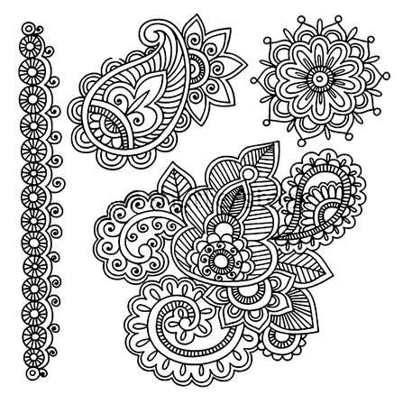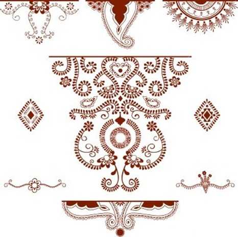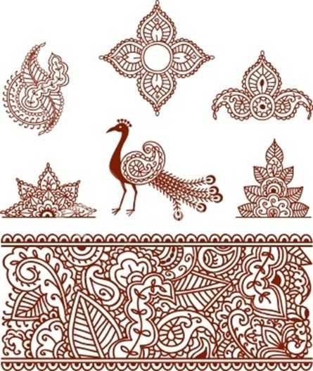 Основу росписи составляет элементарный, порой повторяющийся узор, напоминающий цветы, сердца или животных. Существуют следующие элементы мехенди.