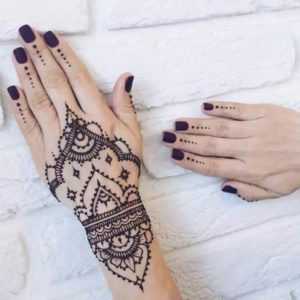Техника мехенди является уникальным искусством росписи по коже. Оно образовалось много столетий назад, в племенах первобытных людей. Мехенди на руках, ногах, животе наносились в виде витиеватых узоров и кружевных орнаментов. Рисунки наносятся хной и таят в себе мистические тайны.