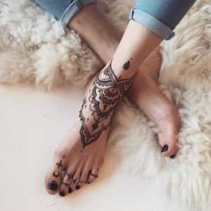 Если ваш рисунок имеет ярко-оранжевый цвет, не пугайтесь. Спустя пару часов рисунок потемнеет и придёт в адекватное состояние. Также, за счет того, что хна эффективнее впитывается в ороговевшие кожные участки, ярче всего татуировка будет проявляться на стопах и ладонях.