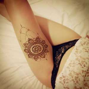 Это один из главных символов буддизма. Мандала является своеобразной, схематической моделью мира. Также ее называют картой космоса. Мандала используется в рисунках хной или татуировках как проводник тайных сторон человека, его внутренних качеств во внешний мир. Мандала означает гармонию и целостность личности.