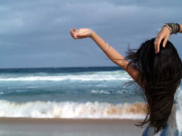 - Гифка: девушка на берегу океана.