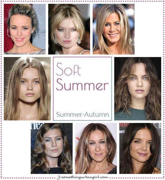 Мягкое лето – прохладное время года, в первую очередь прохладное, но и светлое с серыми, приглушенными тонами. Мягкие летние цвета кожи, глаз и волос смешиваются вместе, что означает, что между ними низкоконтрастный . Ваши глаза серовато-голубые, зеленые или карие . Ваша кожа нейтральная или нейтрально-холодная с пепельным и розоватым оттенком . Ваши волосы имеют пепельный оттенок , варьирующийся от пепельно-русого до темно-коричневого . Ваш цвет волос в основном темнее, чем в другие летние сезоны.