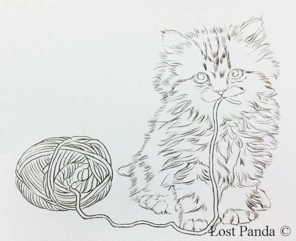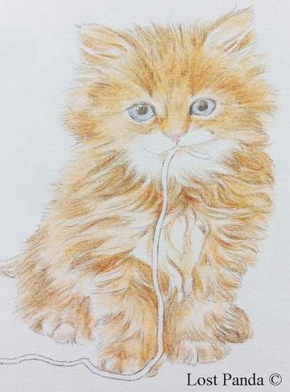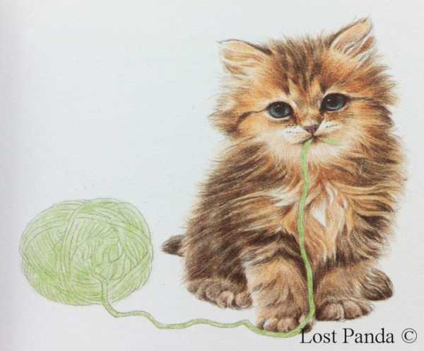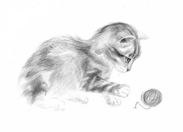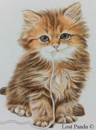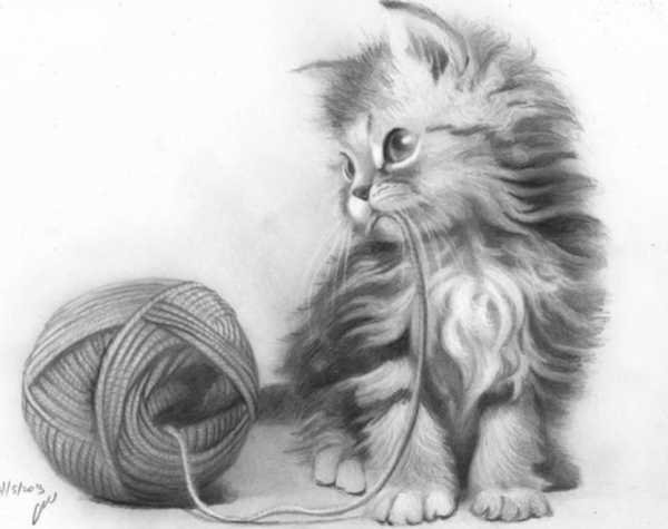 Тот, кто любит рисовать карандашами, цветными или простыми, я так думаю, имеет много терпения. Ведь действительно, сколько нужно старания, чтобы так красиво наносить каждый штрих, передавая цвет, фактуру, объём предмета. Наверное, вы не откажетесь нарисовать такого симпатичного, милого котёнка с клубком ниток. По поэтапным фото вам не составит труда сделать такого домашнего животного.