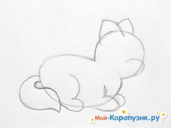 3. Дорисуем с левой стороны пушистый, но короткий хвостик. Кончик его должен касаться задней лапки.