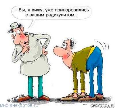 Анекдот про докторов и боль— Доктор, мне мучительно больно. — Это у вас бесцельно прожитые годы в организме накопились.