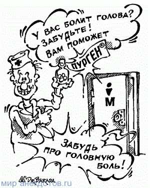 — Доктор, помогите — у моего ребенка запоры, язва, головные боли, цинга, лишай, глисты, тиф и сифилис…