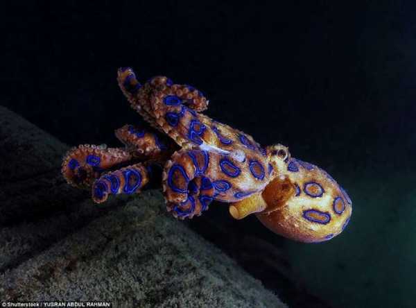 Ядовитый синекольчатый осьминог, несмотря на свои малые размеры ( от 12 до 26 см) содержит столько яда, что им можно убить 26 взрослых человек буквально за пару минут. Эти ядовитые малыши обитают в прибрежных районах и на коралловых рифах Тихого и Индийского океанов.