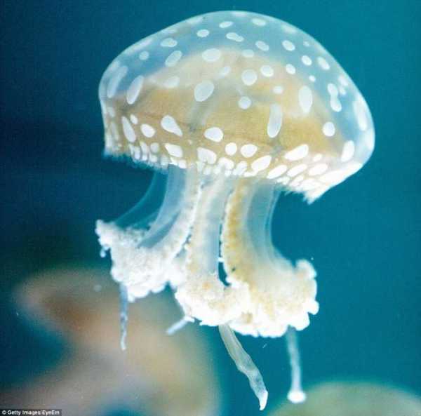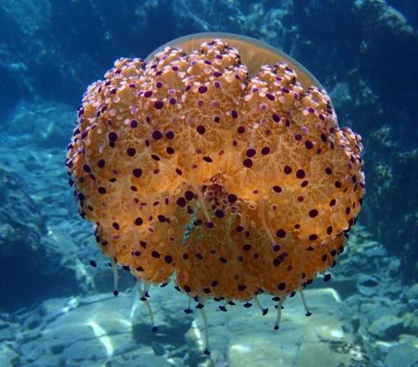 Пятнистую медузу называют также плавающим колоколом. Этот вид, обитащий в районе Австралии и Индо-Тихоокеанском регионе, любит теплую воду и питается креветками.