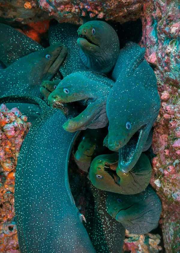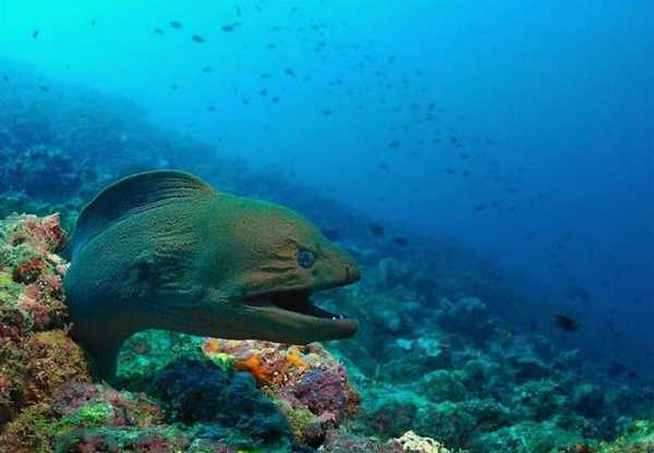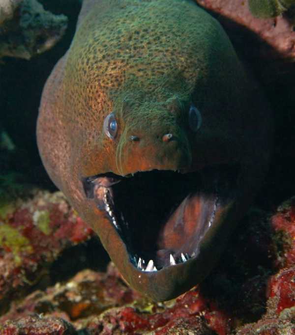 11. А вот и мурена, лучше с ней не связываться, достигают мурены 3 метров в длину, и весом до 10 кг, но это редко. Днем мурены обычно сидят в расщелина скал или кораллов, слегка высунув голову, а ночью выходят на охоту, охотятся в основном на рыб и ракообразных, но бывает и крупная добыча вроде осьминога, нападает на них с засады.