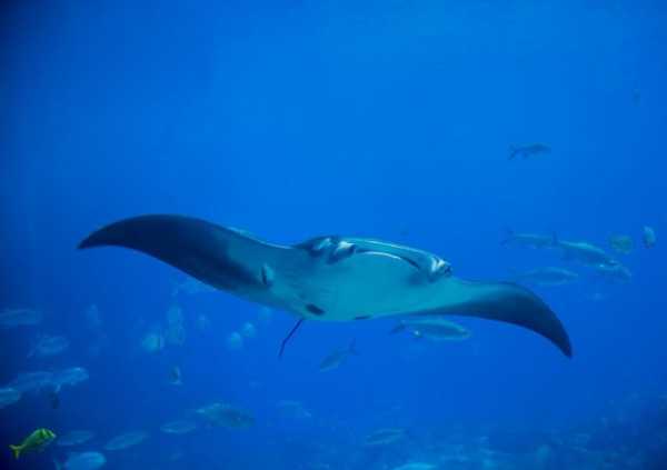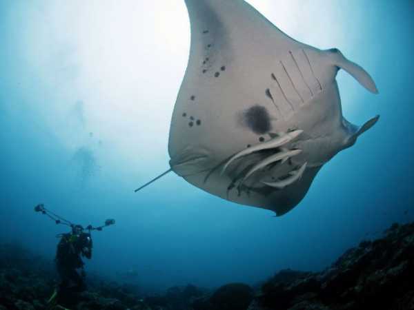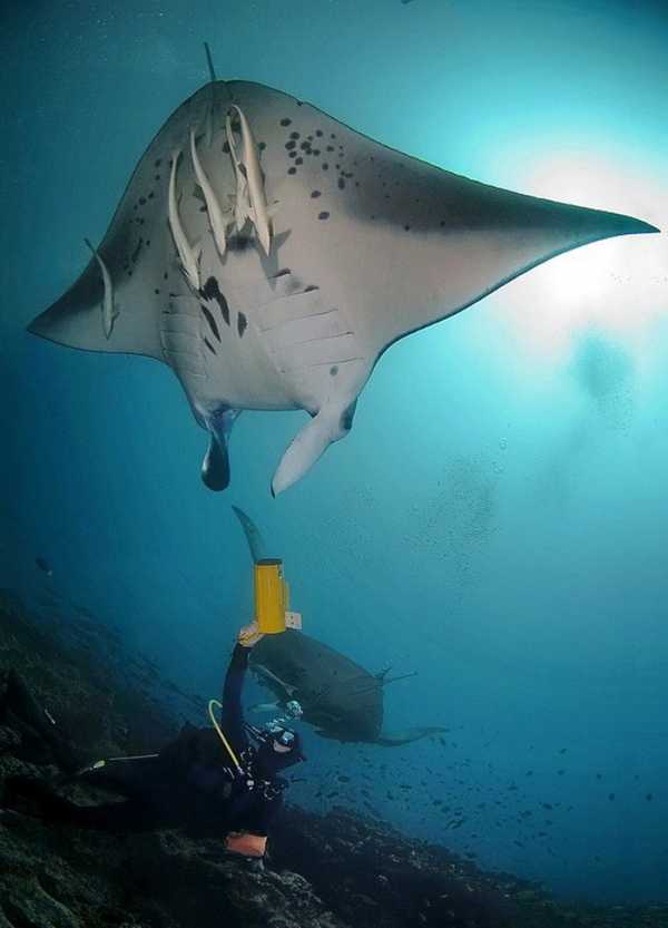 9. Это просто огромный скат, он почти не обращает внимания на дайвера.