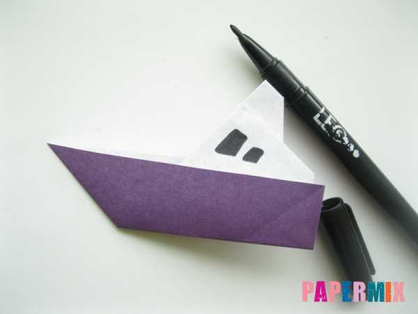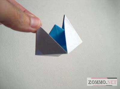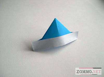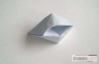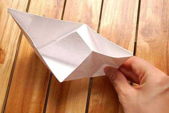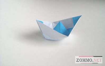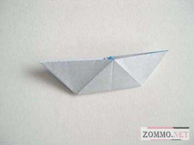 9. Беремся за края фигуры и растягиваем ее. Кораблик оригами готов!