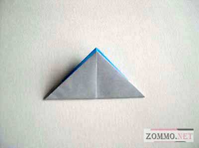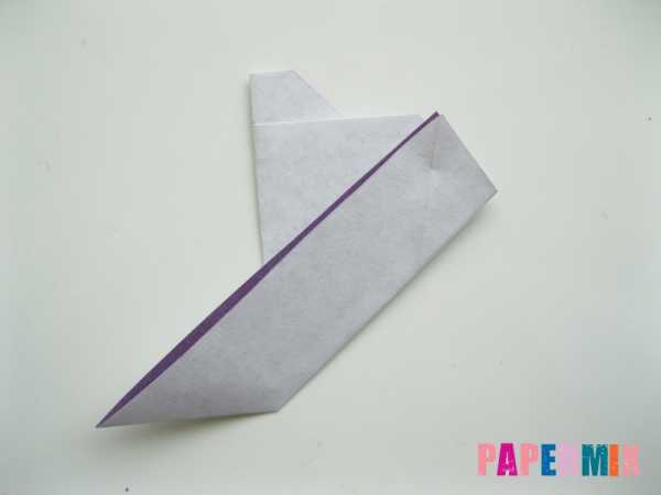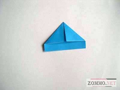 - Отступите от основания получившегося перевернутого равнобедренного треугольника примерно треть его высоты и отогните смотрящий вниз угол вверх.