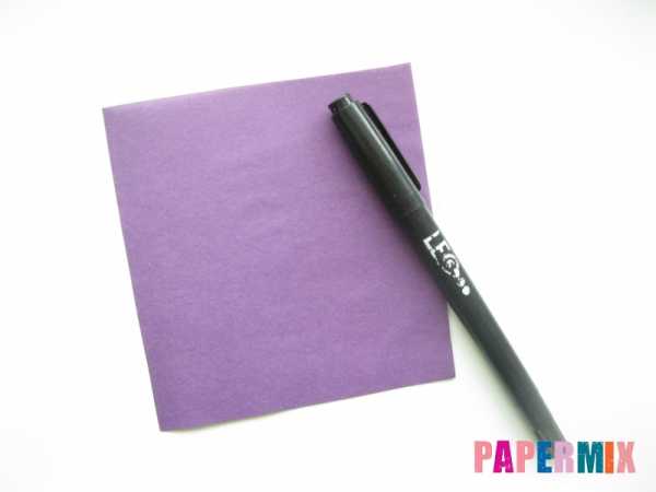 - Односторонний лист бумаги квадратной формы синего или фиолетового цвета