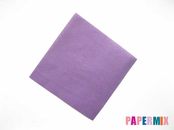 - Сложите квадратный лист бумаги пополам по диагонали, соединив противоположные углы. Хорошенько прогните загибы в обе стороны.