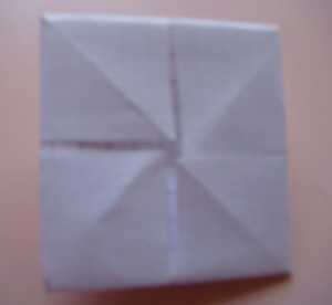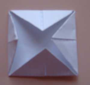 4. Еще раз сгибаем четыре угла к центру квадрата.
